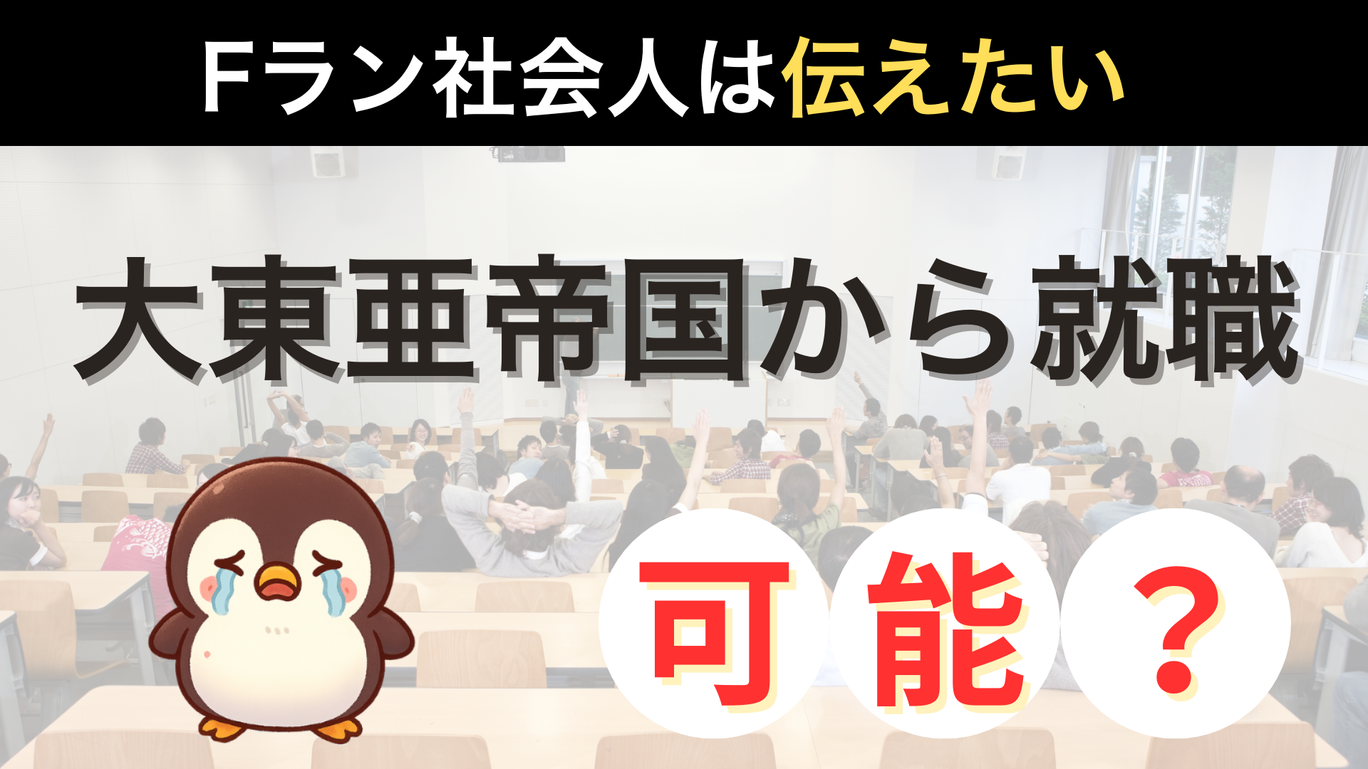 「大東亜帝国」や「摂神追桃」といった大学群にすら該当しない、Fランク大学出身の社会人が直面する悩みや現実について、実体験をもとにまとめています。